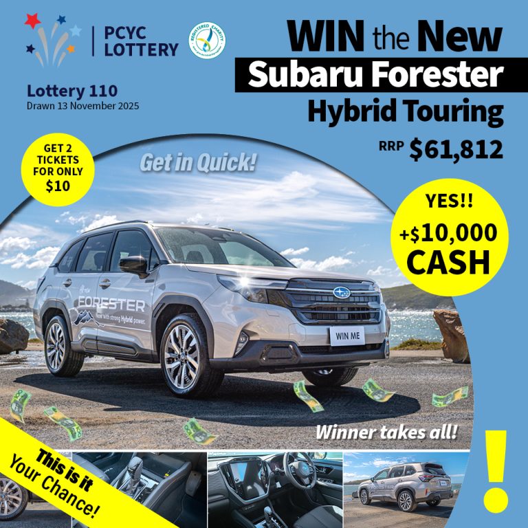 Buy a ticket in the PCYC Art Union Lottery and you have the chance to win from a pool of awesome prizes. By supporting the PCYC Lottery, you are helping to provide positive experiences for young people and building safer, healthier communities through youth development.